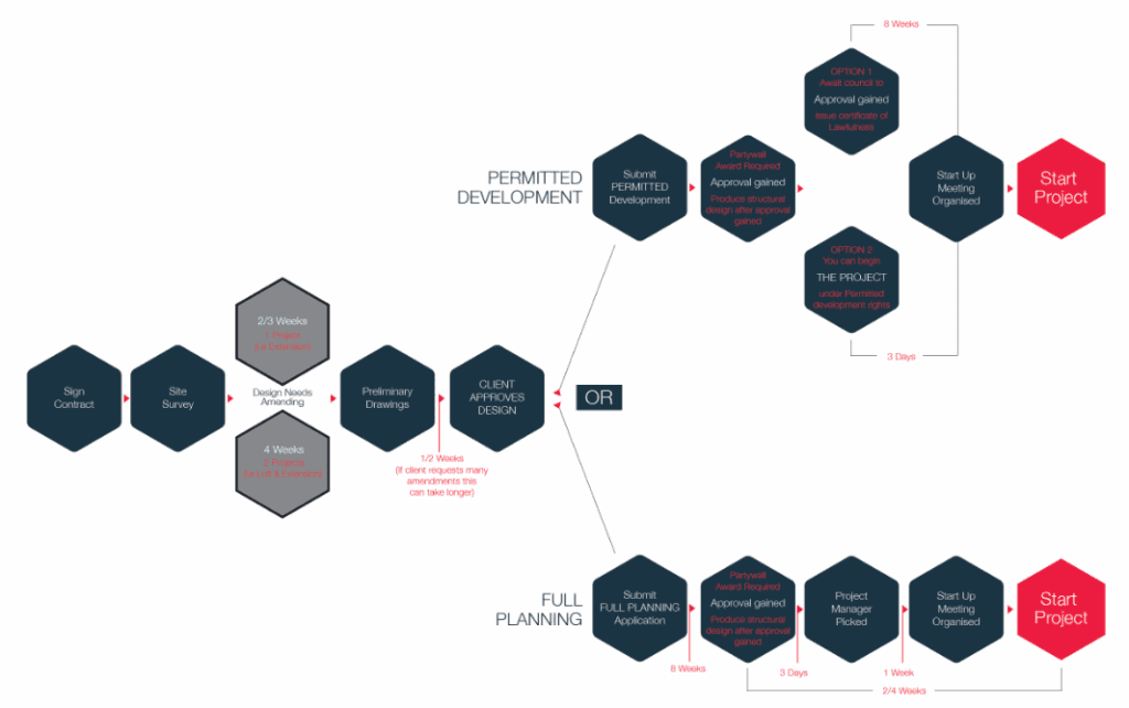 We have been working in this industry for a decades, we know how to create house extension designs to build bespoke loft conversions and extensions in London. Over that period we have developed our design and build process to help simplify the process and share with our clients. These maps are used as a reference in the industry, will always be bespoke to you and your project, but are a good base for you to understand the process
